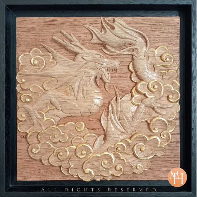 Cette œuvre, qui existe en un exemplaire unique, représente un dragon à trois griffes, symbole de la pluie. Comme tous les dragons orientaux, il est de bon augure, bienveillant et sage.