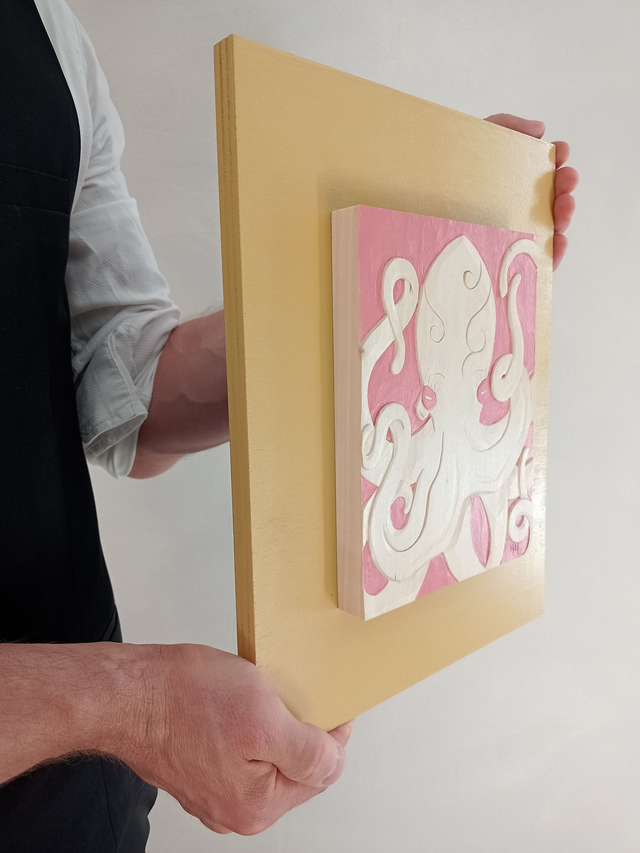 Chaque Octopus imaginé par Mélanie Haudry est minutieusement fabriqué à la main, en utilisant les techniques artisanales traditionnelles de la sculpture sur bois ce qui confère à chaque pièce un caractère unique. Aucune machine n'est utilisée pour la sculpture.