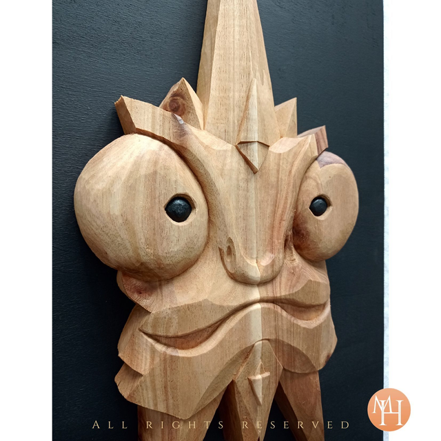 En effet, Camély a pour rôle d'effrayer les forces obscures et de protéger celui ou celle qui le possède. C'est une œuvre unique issue du savoir-faire artisanal de la sculpture sur bois et de la modernité avec ses lignes pures et bien dessinées. Cette sculpture est accompagnée d'un certificat d'authenticité.
