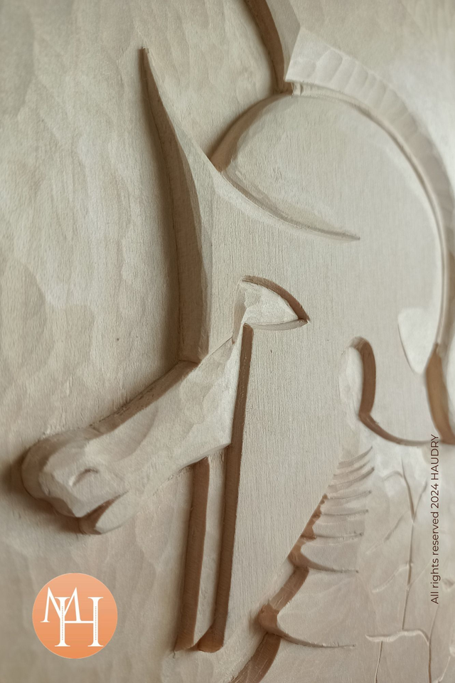 Cette pièce imaginée par Mélanie Haudry est le fruit d'un savoir-faire exceptionnel alliant tradition et art contemporain. Aucune machine n'est utilisée pour la sculpture. Un certificat d'authenticité est joint à cette œuvre afin de garantir son caractère exclusif et précieux.